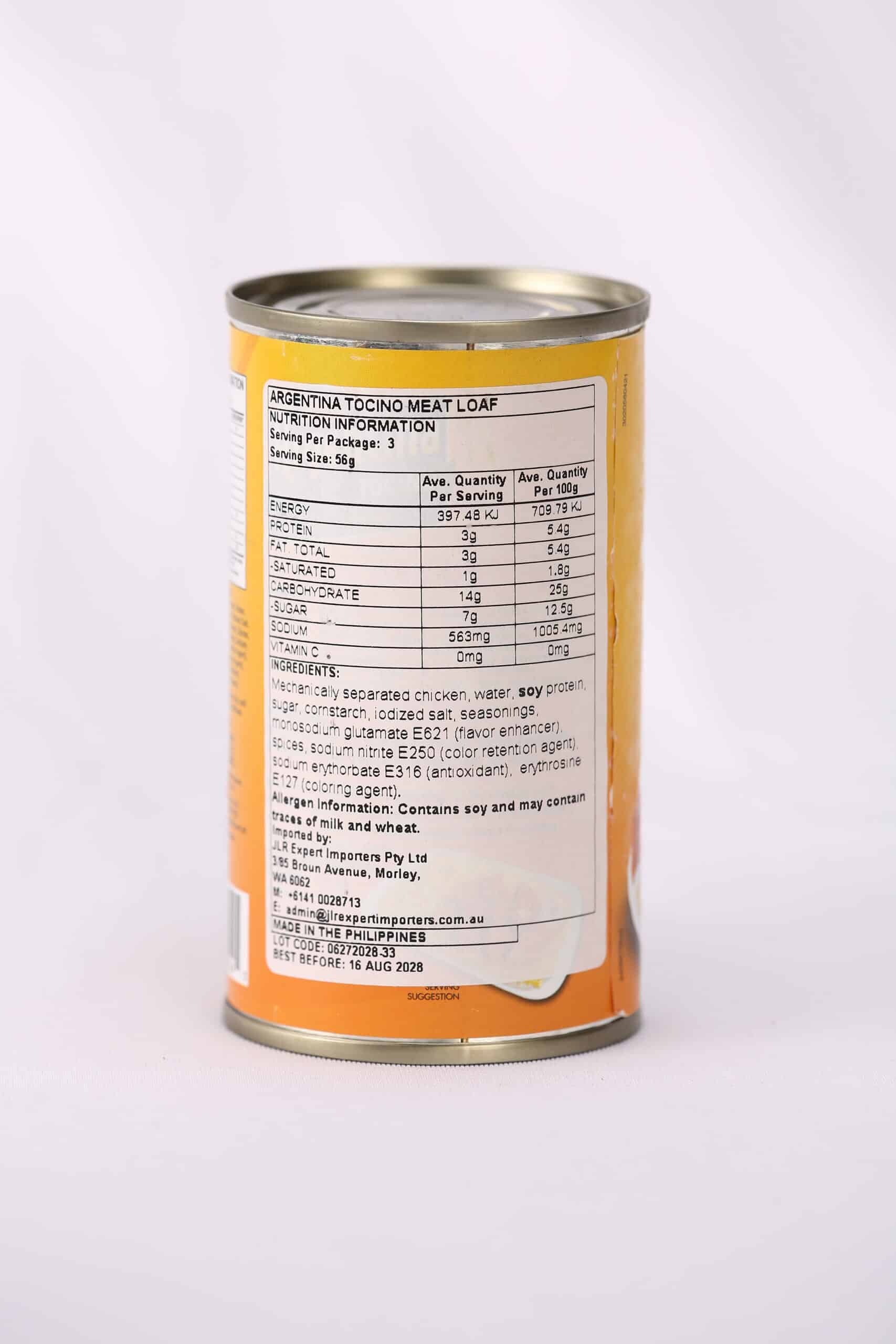 Made with a premium mix of pork and beef, ARGENTINA MEATLOAF (TOCINO) is a canned, hearty meatloaf soaked in a rich, smokey-sweet glaze. If you want an easy yet fulfilling meal, look no further than ARGENTINA MEATLOAF (TOCINO)!